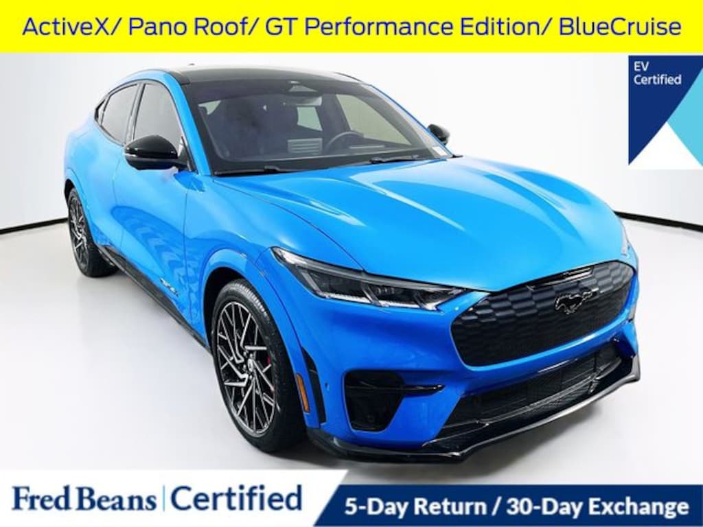 Experience the exhilaration of the 2023 Ford Mustang Mach-E GT. This electrifying performance SUV offers uncompromising power and style, delivering an unparalleled driving experience. With its dual electric motors, advanced all-wheel-drive system, and impressive 90 MPGe city and 77 MPGe highway ratings, this Mustang Mach-E GT delivers thrilling acceleration and exceptional efficiency.
