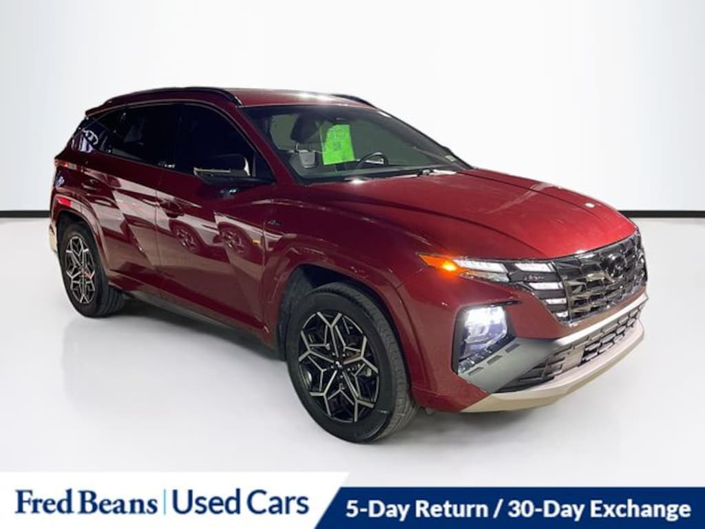 CARFAX One-Owner. Clean CARFAX. 24/29 City/Highway MPG 2022 Hyundai Tucson N Line 2.5L I4 DGI DOHC 16V LEV3-ULEV70 187hp 8-Speed Automatic with SHIFTRONIC AWD 4D Sport Utility Red Crimson For better peace of mind all our used vehicles have a 127-point inspection and come with a 5-day return, 30-day exchange (As-Is vehicles are excluded). Our exclusive Auto Rewards Program provides better value with a $50 Service Gift Certificate, Free Pa State Safety inspections, discounts for local merchants and more. Plus, you can earn up to $2000 towards your next vehicle just by servicing with Fred Beans! As Fred Beans always says, our used cars are better because our reputation depends on it.