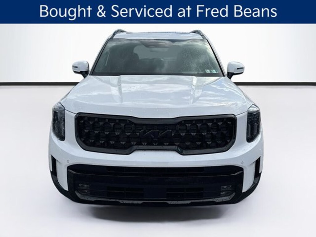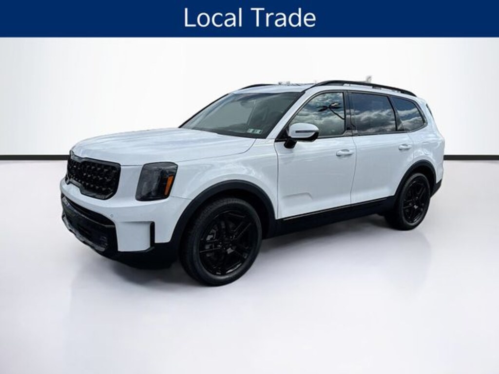 Discover the ultimate family-friendly SUV in our pristine 2025 Kia Telluride SX-Prestige X-Line. This meticulously maintained SUV boasts a stunning Glacial White Pearl exterior, complemented by a wealth of premium features that elevate your driving experience.