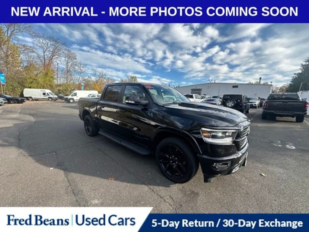 Recent Arrival! 2022 Ram 1500 Laramie HEMI 5.7L V8 Multi Displacement VVT 8-Speed Automatic 4WD 4D Crew Cab Diamond Black Crystal Pearlcoat Great Service History, Free First Oil Change, Apple CarPlay, Dome Dual LED Reading Lamp, Dual-Pane Panoramic Sunroof, Google Android Auto, LED Dome/Reading Lamp.