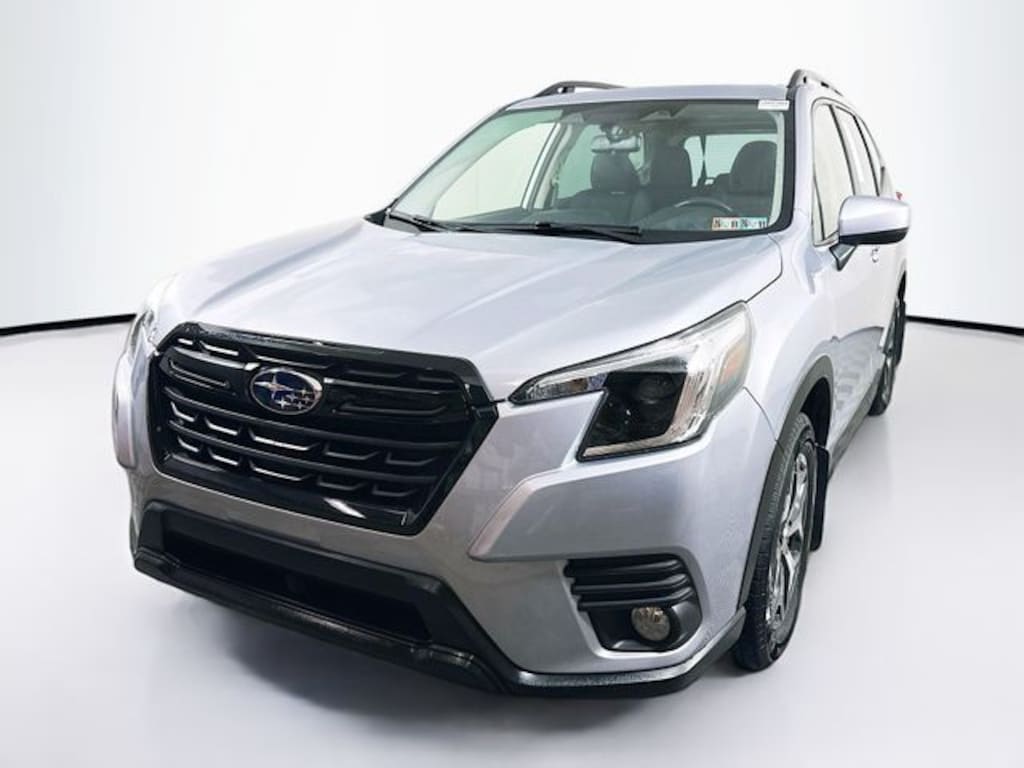 2023 Subaru Forester Premium 2.5L 4-Cylinder DOHC 16V Lineartronic CVT AWD 4D Sport Utility Ice Silver Metallic Local Trade, 7 Year / 100k Powertrain Warranty, Non Smoker, Blind-Spot Detection (BSD), Exterior Parking Camera Rear, EyeSight System, Heated front seats, Power driver seat, Power moonroof: Panoramic, Power Rear Gate, STARLINK/Apple CarPlay/Android Auto.