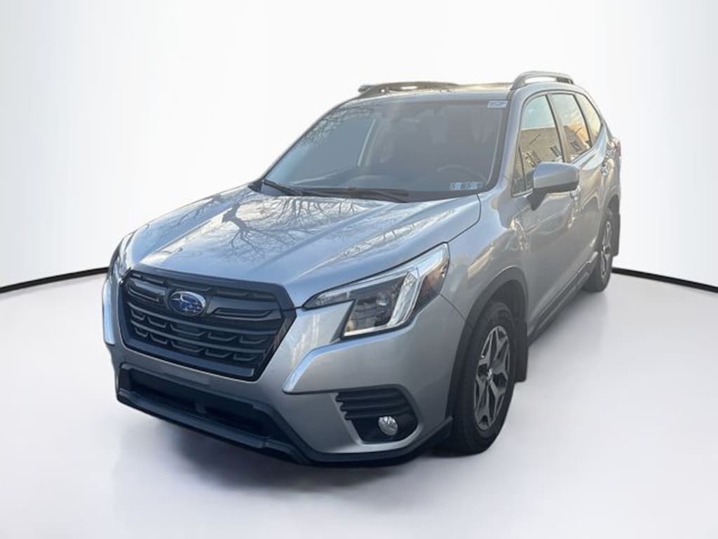 Recent Arrival! 2023 Subaru Forester Premium 2.5L 4-Cylinder DOHC 16V Lineartronic CVT AWD 4D Sport Utility Ice Silver Metallic Local Trade, 7 Year / 100k Powertrain Warranty, Non Smoker, Blind-Spot Detection (BSD), Exterior Parking Camera Rear, EyeSight System, Heated front seats, Power driver seat, Power moonroof: Panoramic, Power Rear Gate, STARLINK/Apple CarPlay/Android Auto.