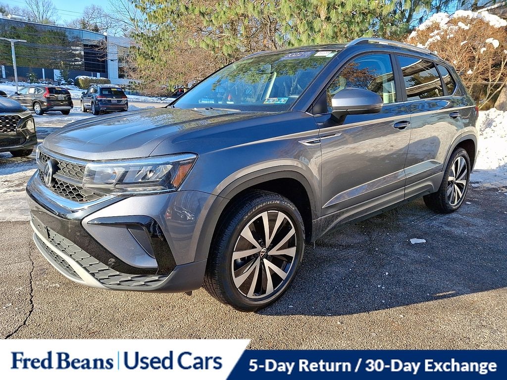 2022 Volkswagen Taos 1.5T SE 1.5L I4 Turbocharged DOHC 16V LEV3-SULEV30 158hp 7-Speed DSG Automatic with Tiptronic AWD 4D Sport Utility Platinum Gray Metallic Great Service History, Remainder of Factory Warranty, Factory Certified Vehicle, Free First Oil Change, Auto Reward Program.