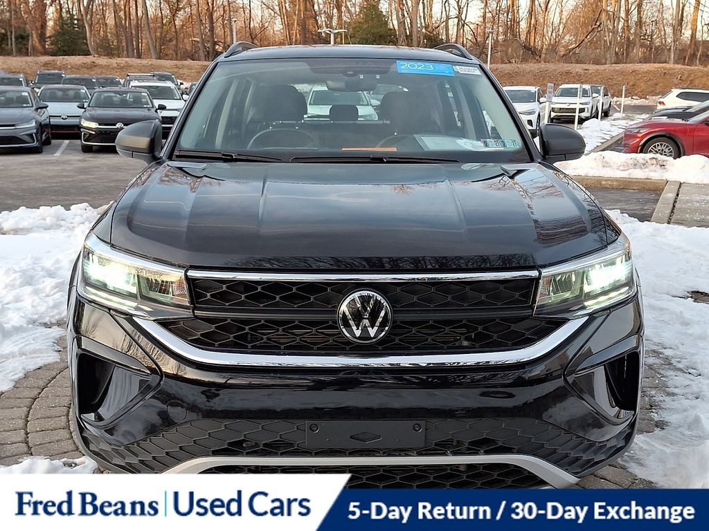 Recent Arrival! 2023 Volkswagen Taos 1.5T S 1.5L I4 Turbocharged DOHC 16V LEV3-SULEV30 158hp 7-Speed DSG Automatic with Tiptronic AWD 4D Sport Utility Deep Black Pearl Great Service History, Remainder of Factory Warranty, Factory Certified Vehicle, Auto Reward Program.