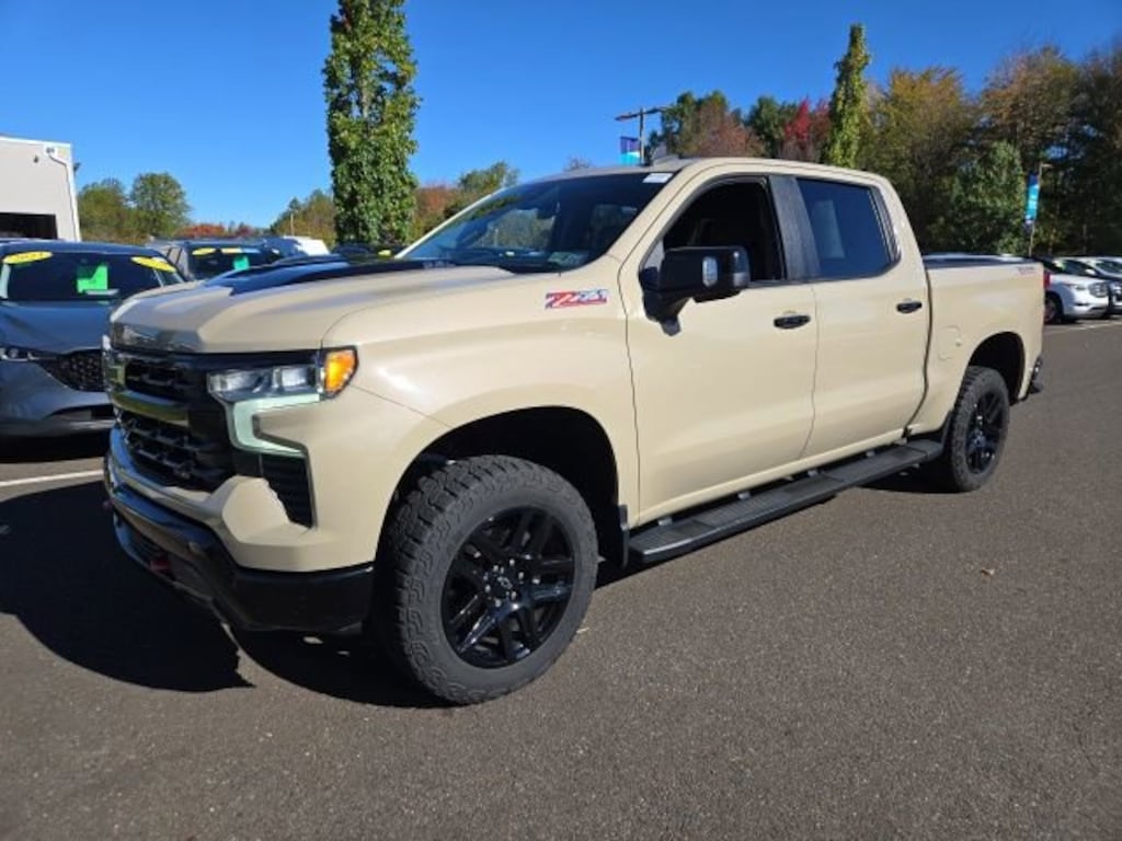 Recent Arrival! 2022 Chevrolet Silverado 1500 LT Trail Boss EcoTec3 6.2L V8 10-Speed Automatic 4WD 4D Crew Cab Sand Dune Metallic Great Service History, 10-Speed Automatic, 4WD, Black Leather, Convenience Package II, Hitch Guidance, Hitch Guidance w/Hitch View, Integrated Trailer Brake Controller, Leather Package, LT Trail Boss Premium Package, Power Sliding Rear Window w/Rear Defogger, Power Tailgate, Premium Bose 7-Speaker Sound System, Protection Package, Safety Package, Trailering App, Trailering Package, Universal Home Remote.