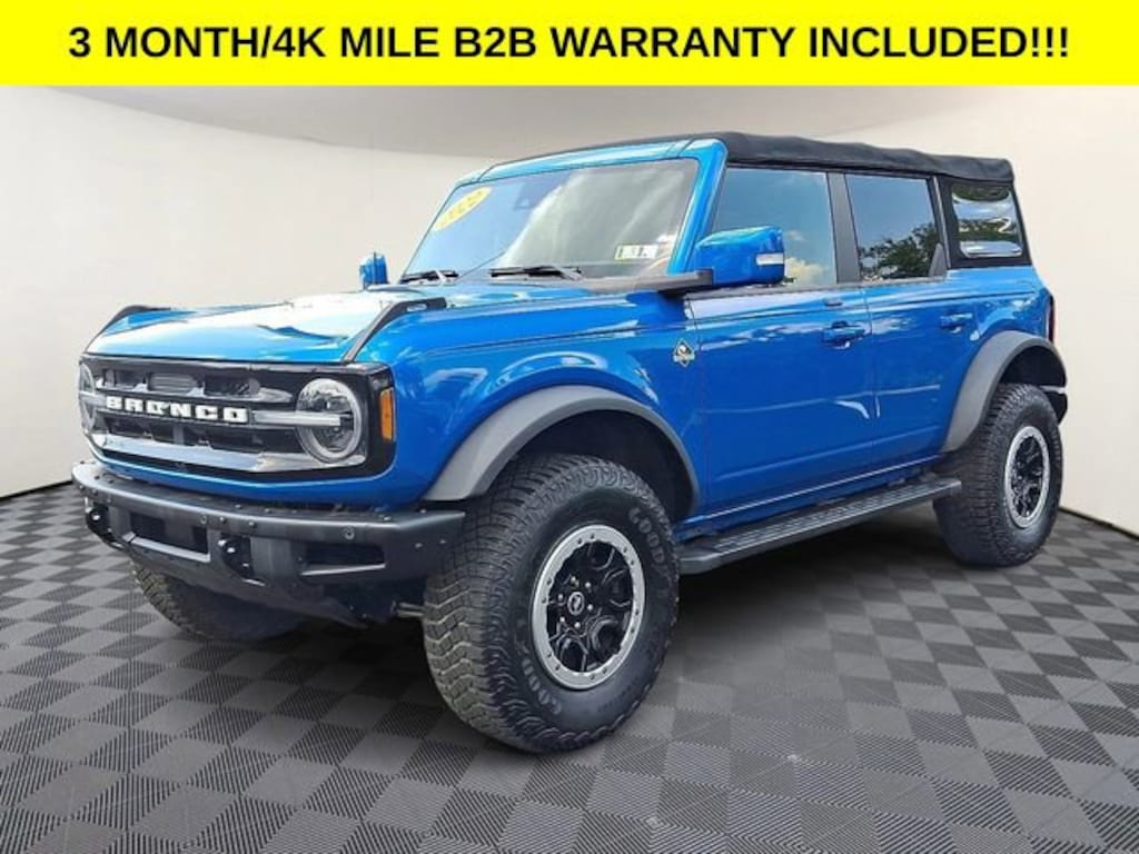 2022 Ford Bronco Outer Banks 2.7L EcoBoost V6 10-Speed Automatic 4WD 4D Sport Utility Blue Metallic Great Service History, 3 Month / 4,000 Mile Comprehensive Warranty, Free First Oil Change, Auto Reward Program.