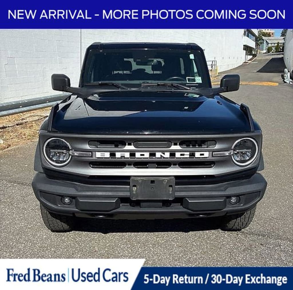 Recent Arrival! 2022 Ford Bronco Big Bend 2.3L EcoBoost I-4 10-Speed Automatic 4WD 2D Sport Utility Shadow Black Local Trade, 7 Year / 100k Powertrain Warranty, 12 Month / 12,000 Mile Comprehensive Warranty, Factory Certified Vehicle, Free First Oil Change, 5 Day Return / 30 Day Exchange, 2-Door Intelligent Access w/Lock/Unlock, Air Conditioning, Ambient Footwell Lighting, Auto-Dimming Interior Rear-View Mirror, Connected Navigation, Dr & Pass Illuminated Sliding Visor Vanity Mirrors, Dual-Zone Electronic Automatic Temperature Control, Enhanced Voice Recognition, Equipment Group 222A Mid Package, Front Row Heated Seats, Front wheel independent suspension, Power Outlet - Back Side of Center Floor Console, Rear Parking Sensors, Remote Start System, SYNC 4.