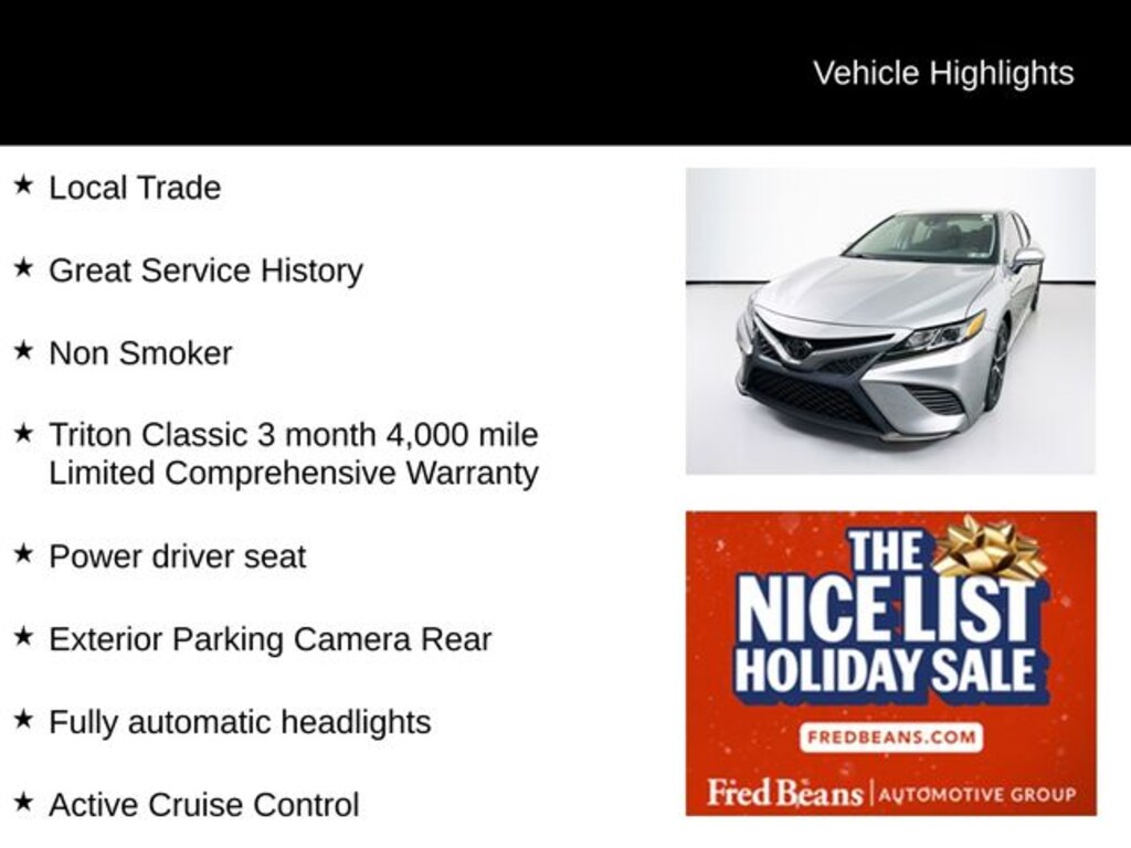 2020 Toyota Camry SE 2.5L I4 DOHC 16V 8-Speed Automatic FWD 4D Sedan Celestial Silver Metallic Local Trade, Great Service History, Non Smoker, Triton Classic 3 month 4,000 mile Limited Comprehensive Warranty, Black Cloth, Active Cruise Control, Alloy wheels, Apple CarPlay/Android Auto, Exterior Parking Camera Rear, Fully automatic headlights, Power driver seat.