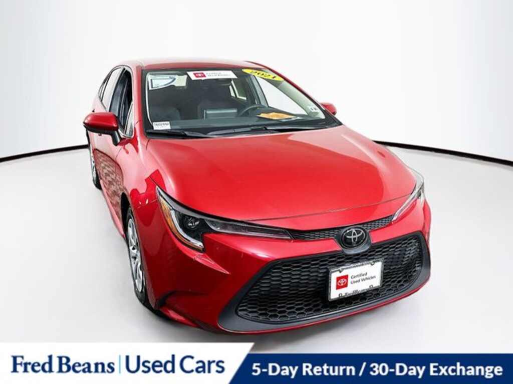 Recent Arrival! 2021 Toyota Corolla LE 1.8L I4 DOHC 16V CVT FWD 4D Sedan Barcelona Red Metallic Great Service History, 5 Day Return / 30 Day Exchange, Auto Reward Program, Corolla LE, 4D Sedan, 1.8L I4 DOHC 16V, FWD, Barcelona Red Metallic, Black w/Premium Fabric Seat Trim.