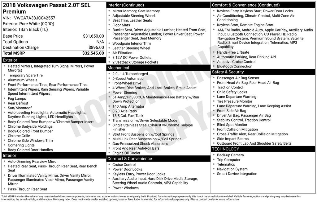 Used 2018 VolkswagenPassat 2.0T SEL Premium