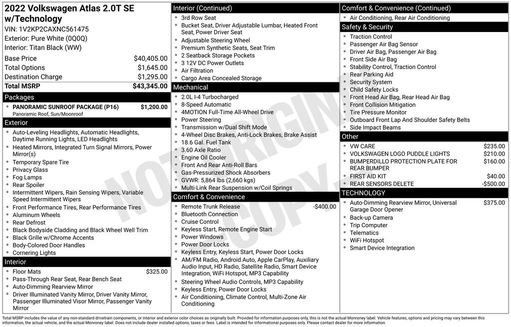 (Warning- a little long) We were looking for a roomy 3 row SUV with easy access to all 3 rows. After a ton of research and multiple test drives of the possible options, we settled on the VW Atlas, SEL Premium. We’ve owned our Atlas for a little over a month now. We’ve taken it on a couple of long trips (1000+ miles), so we’ve seen enough to write a decent review. The Atlas was one of 4 finalists for us. The others were the GMC Acadia, the Chevy Traverse, and the Infiniti QX60. These were our finalists for one primary reason- access to the rear seat with car seats installed in the middle row seats (without climbing into the middle row, and going through the middle space between the captain’s chairs). No other 3 row SUVs had this option, although I understand some will have it for the 2020 model year. Because we only had 4 models to look at, we focused all our attention on these models. Likes: Third row access is incredibly easy in the Atlas. By pulling up on the release on the top of the seat, the entire seat tips forward, and then slides forward, leaving a large opening to access the rear seat, and allowing us to buckle our 4 year old into that seat very easily, even while standing outside the car. This middle row seat movement can be performed with a car seat installed in the middle row seats, a maneuver that very few 3 row SUVs are capable of. The Infiniti QX-60 has a similar setup, and it is just as easy to use. The Acadia and Traverse also have this option, but during our test drives, we found the mechanism to be incredibly difficult to use. The salesman said it was probably just stiff, but it was almost impossible for my wife to get the seat to move, and it happened in both of those models. Also, the GMC and Chevy only have this capability on the passenger side, which is highly annoying. The interior of the Atlas is HUGE, the door openings are very wide to provide easy access, and it is very comfortable. The seats in the Atlas were by far the most comfortable of any vehicle we tested. When I say that, I mean ALL of the seats, to include the 2nd and 3rd rows, and the 3rd row is actually usable by adults. I am 5’10”, and I was very comfortable back there. I would not say the same of the other three vehicles tested. Also, the middle row seats of the Chevy and GMC were very uncomfortable. The had a weird shape, with a weird forward “hump” that hit right between the shoulder blades. I’m sure this has something to do with crash safety or something like that, but those seats were just extremely uncomfortable. Our Atlas is equipped with a panoramic sunroof, which is pretty cool. It also has a power sunshade for the sunroof. The Chevy and GMC have a very cheap, manual cover. It is spring-loaded, and if you accidentally let go of it, it will snap back like a window shade. At this price level, it should be a power sunshade. While we are on the topic of sunshades: the 2nd row windows in the Atlas have built-in sunshades, which is ingenious! I wish all cars had this feature. The Atlas has an infotainment system that is easy to use and intuitive, and it allows for swiping and pinch zooming. Apple Car Play is awesome! Surprisingly, some manufacturers have not integrated this feature at this time. The digital instrument panel has a very nice, modern look, and it offers 5 or 6 different views. One of the really cool things about the Atlas- you can display the nav map in the middle of the instrument panel. Additionally, you can make the map bigger and the gauges smaller, which allows you to see more map detail- a really nice option. The car even has an altimeter, which is really cool to me (I’m a pilot by trade). Not so much for my wife… The Atlas allows for 4 customizable driver settings. It also has an overhead view camera, which allows you to see a birds-eye view of the vehicle- very handy to ensure you are actually centered in that parking spot! (this is only offered in the highest trim level) The car also has a traditional shift lever. This appeals to me, because I’m old school. The Atlas has a very nice exterior, and it looks great from both the front and the back. The LED headlights are really nice, and much brighter than standard headlights. Also, the daytime running lights look really cool (I noticed that when another Atlas pulled up behind us on the freeway). It also has a small turn radius, which makes maneuvering in tight spaces much easier. The Atlas has a few other really nice options- adaptive cruise control, auto-dimming headlights, auto-wipers, and an auto-park feature (highest trim level only) for parallel and back in perpendicular parking. The cruise control also has an option to speed up or slow down in increments of 5 mph in addition to the more standard 1 mph increment, which is handy. It also has a feature that turns on the fog light on the side of the car in the direction of a turn, providing extra light for making the turn safely. You can also lock the middle row seat HVAC controls, to prevent the inevitable arguments from the kiddos! One of the best things about the Atlas is the industry leading warranty- 6 years/72k miles, bumper to bumper. Very few of the competitors even come close to this. And it is manufactured in the USA, which I really like. Now let’s talk about the things I don’t like about the car. (And believe me when I say these things are pretty minor in the grand scheme of things…) The biggest gripe I have is the engine power. Given that my primary goal with this vehicle is to comfortably get a lot of people from point A to B, this isn’t a huge deal. I didn’t buy this car to qualify for the Indy 500, but I do wish VW offered some different engine options, like a V-8 or a turbo V-6. They do offer a turbo 4 cylinder, but it is not offered above the base trim level, and I don’t think it is anything more than adequate for this car anyway. A close 2nd for cons would be the height of the front seat armrests (on the door side of each